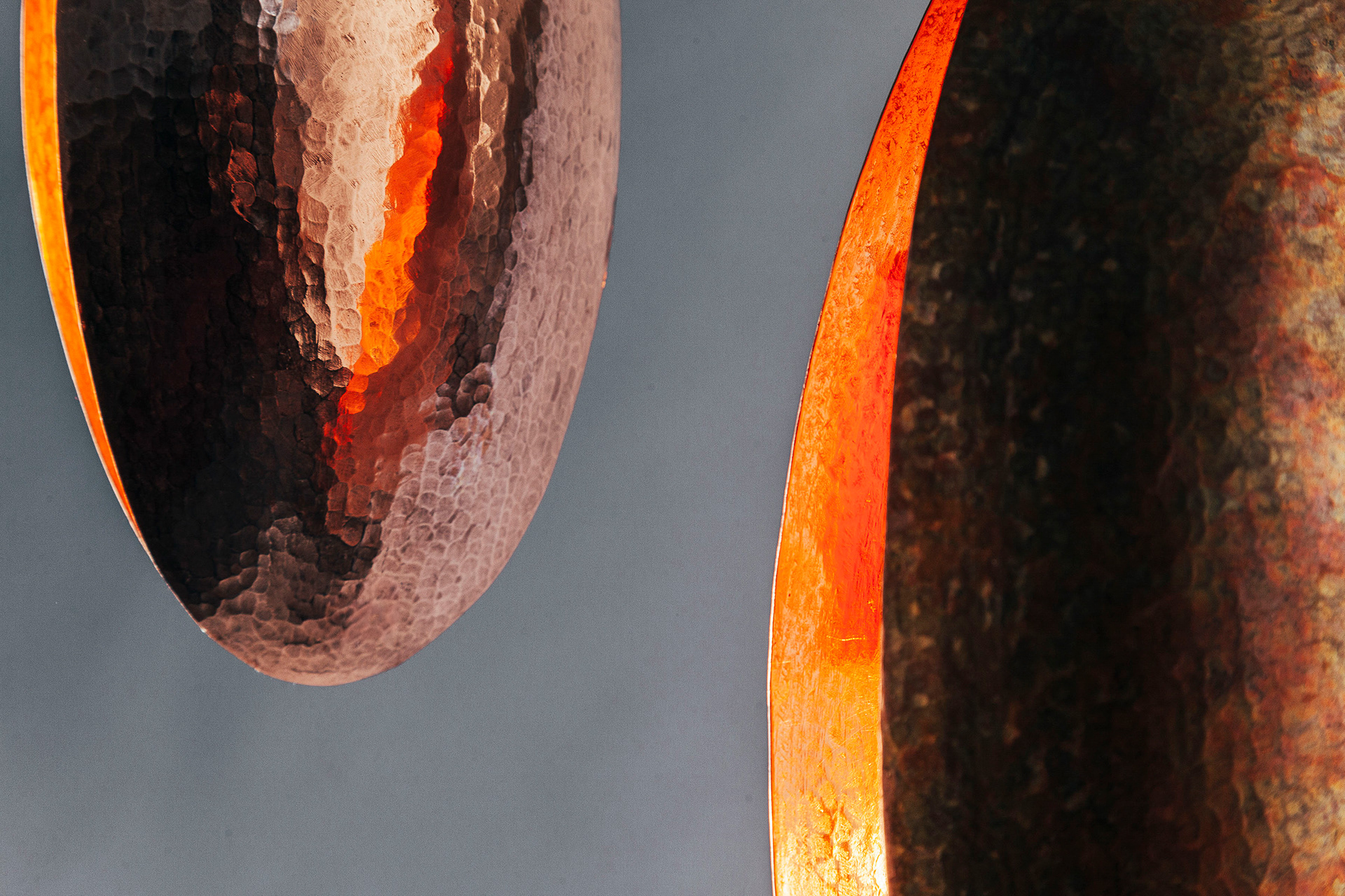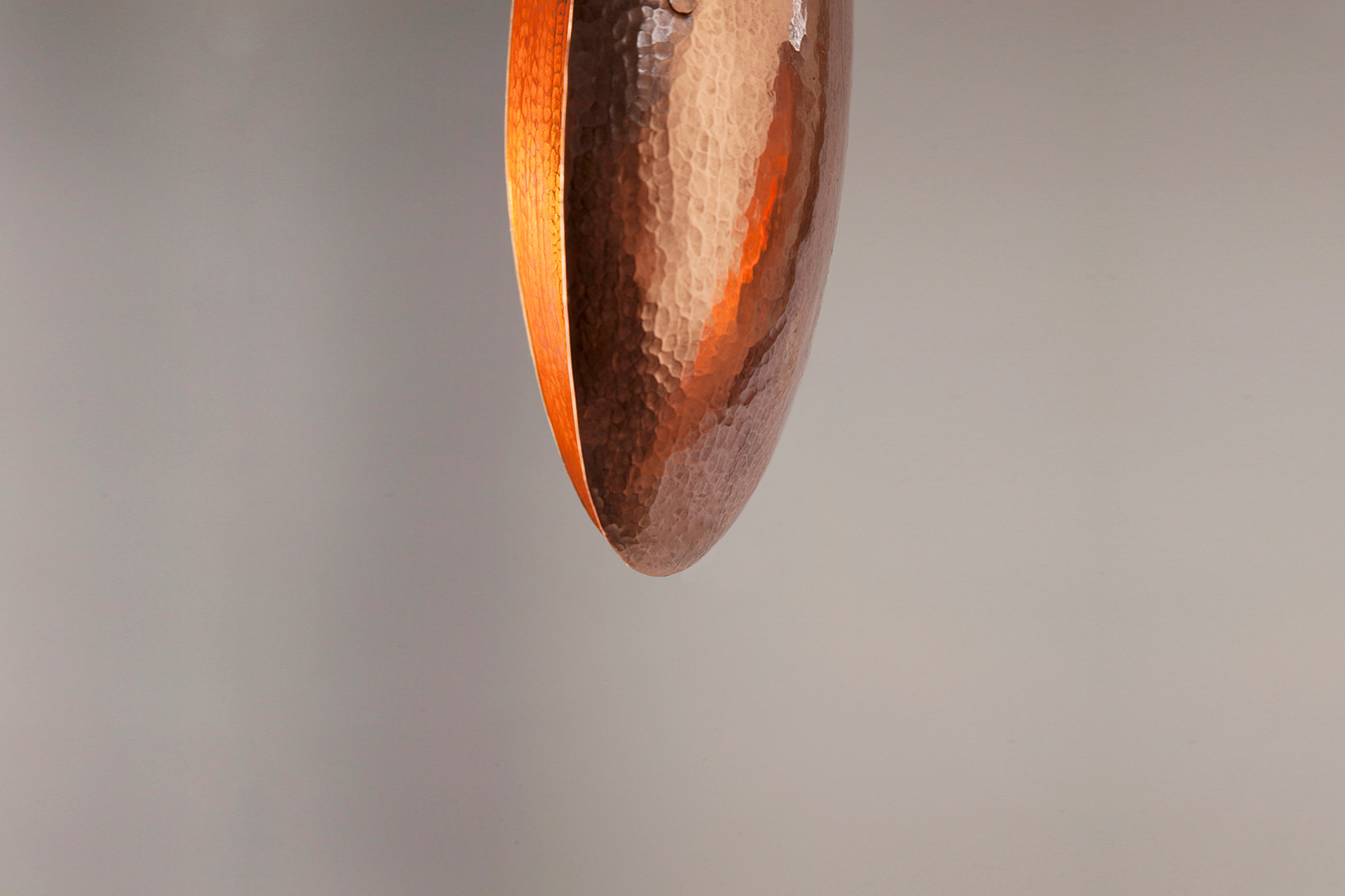 Handmade from hammered copper by Roma coppersmiths in a Transylvanian village, Autumn Leaf is a quiet, poetic lighting object that lives between function and ritual.