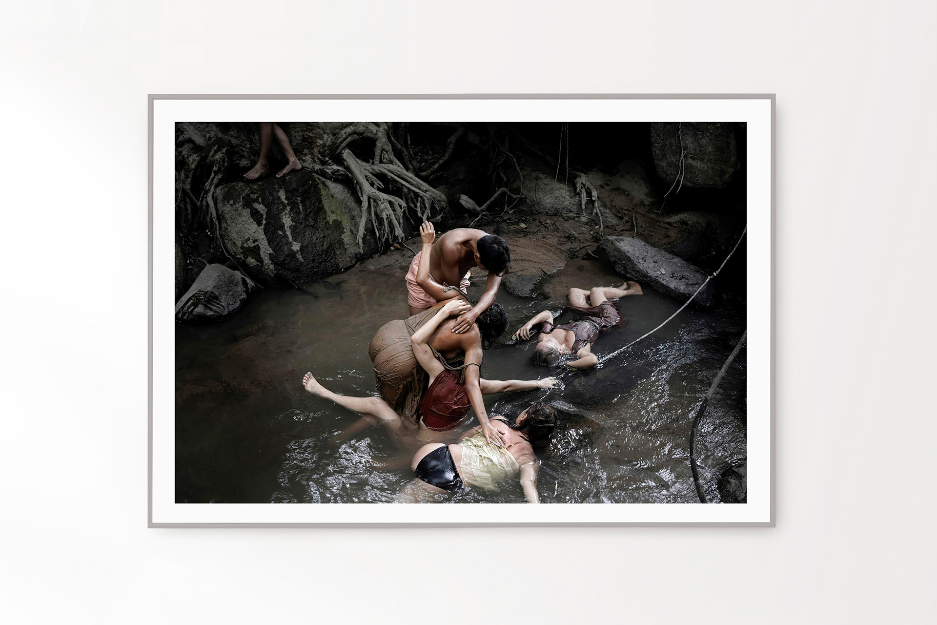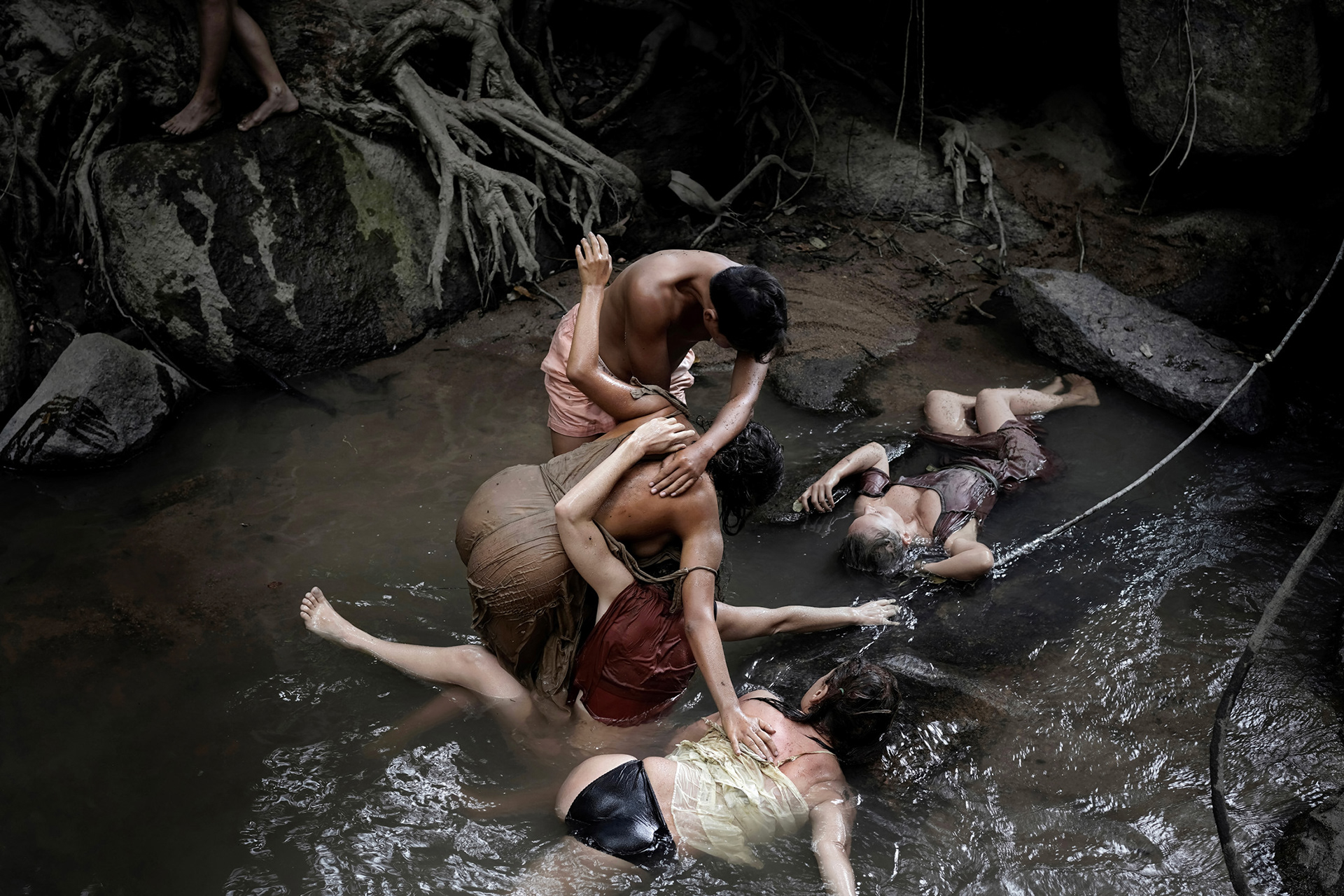 This photograph is part of a series created on a secluded tropical island during the pandemic, where I lived and worked with movement-improviser friends in deep connection with the natural landscape. The series captures spontaneous, body-based interactions with nature — moments where human presence blends, dissolves, and reconfigures into new forms.