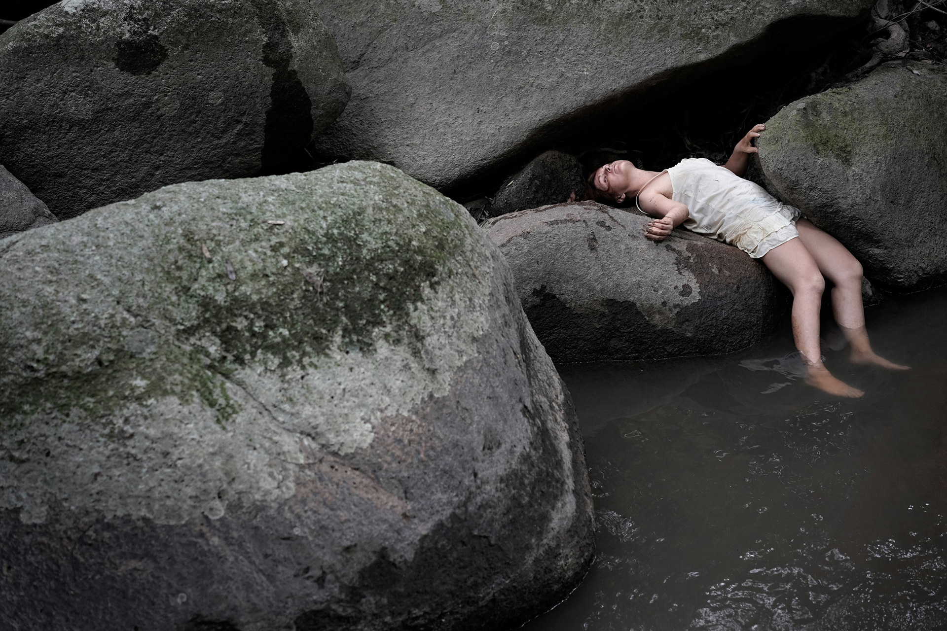 This work is part of a conceptual photography series born from my deep immersion in nature with my movement-improviser friends on a temporarily isolated tropical island during the pandemic. The series explores embodied awareness within a rich natural setting—a non-verbal space where ephemeral, chaotic compositions of the human body emerged through spontaneous contact with the land and with one another.
