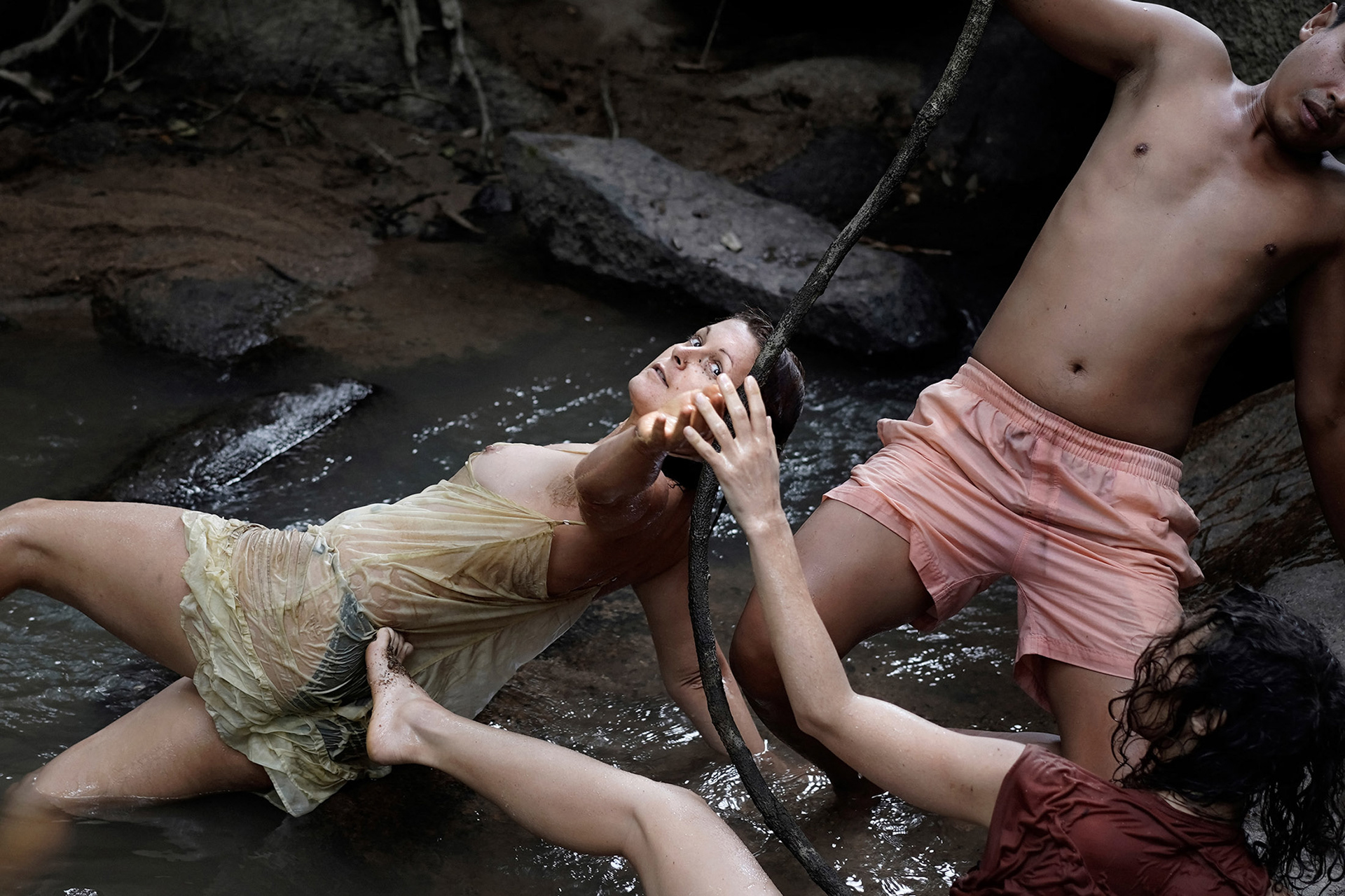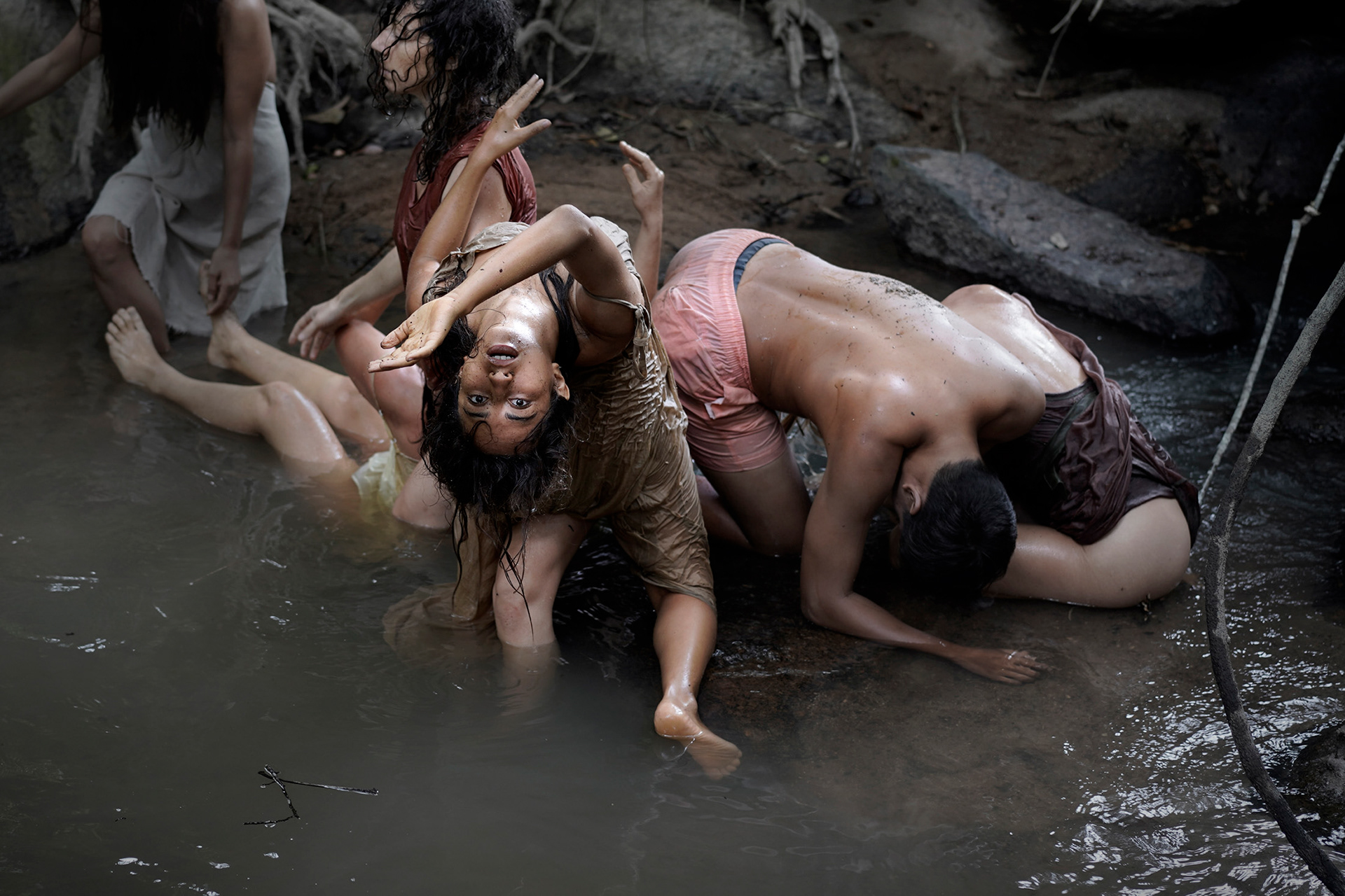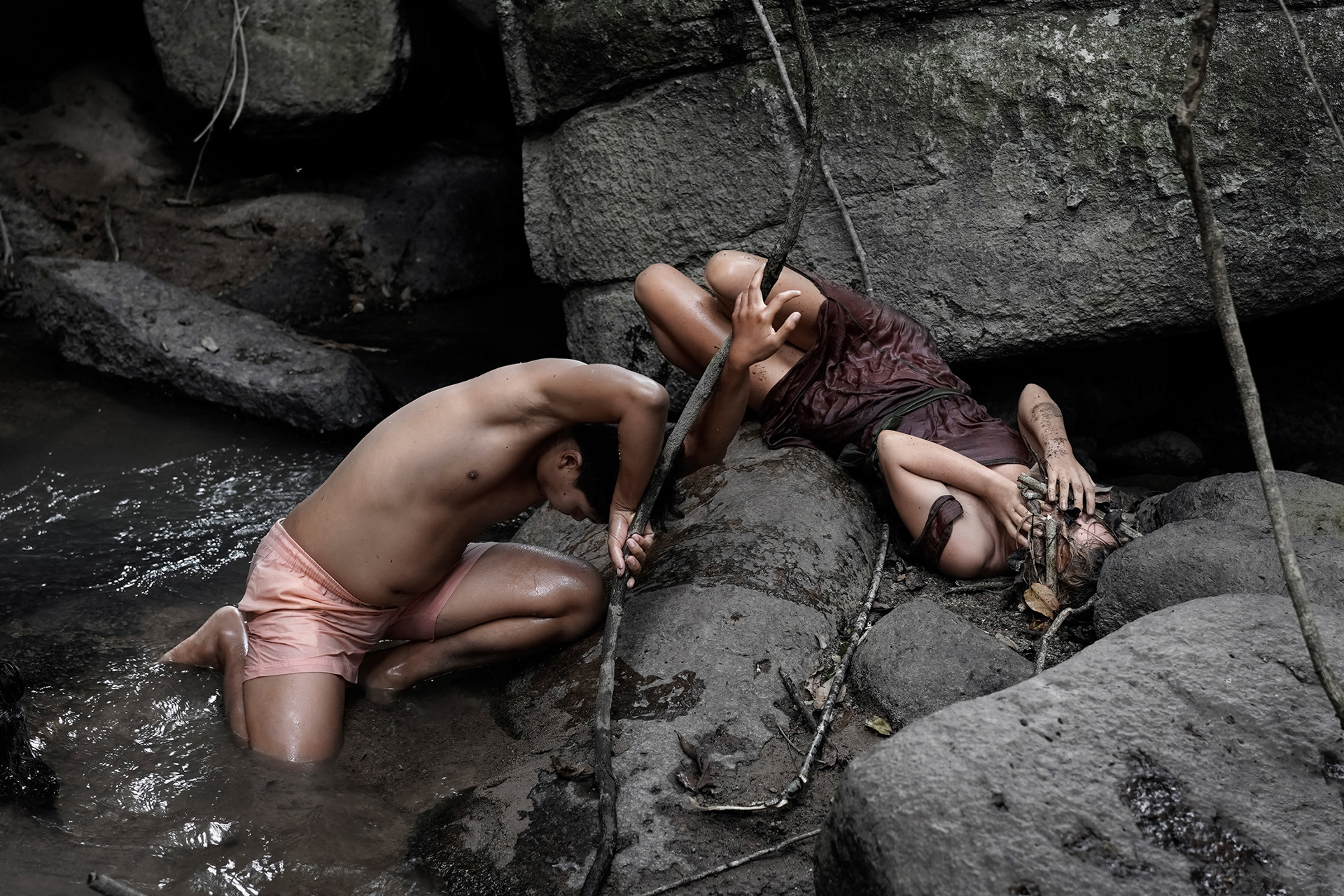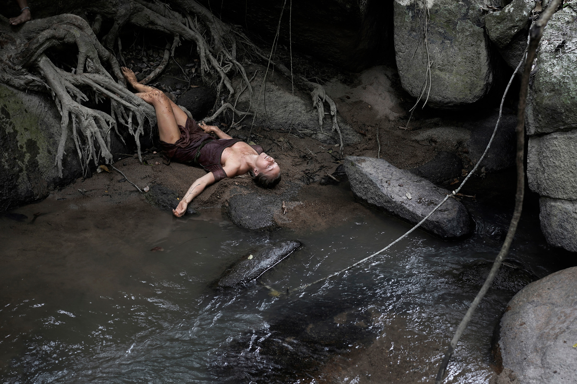 Through improvised, fleeting encounters shaped by gravity, touch, and porous attention, the series captures human movement and embodied gestures in a tropical setting. Using the camera, I reinterpreted these raw interactions to form new narratives that diverge from lived reality. The resulting images carry a dark, Baroque cinematic sensibility: chiaroscuro, ambiguity, and suspended tension infuse each frame with mystery and primal energy.